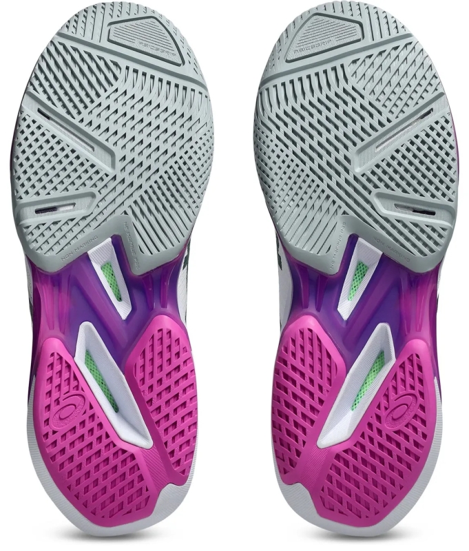 オールコート用モデルの靴底のつま先部には、アシックスが独自開発したラバー素材「ASICSGRIP(アシックスグリップ)」が配されています。これは、コート上で驚異的なグリップ力を発揮します。