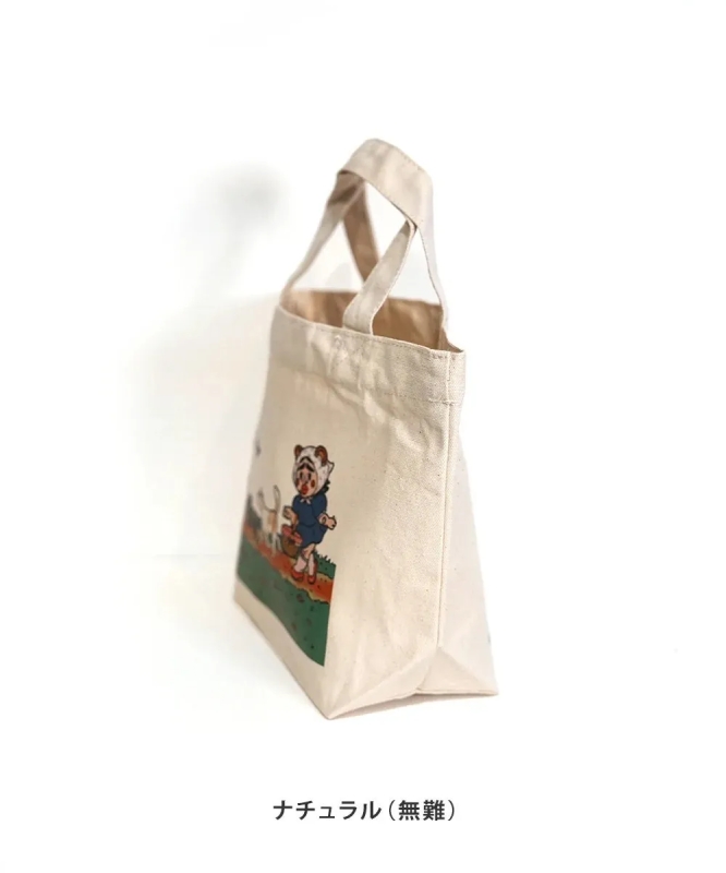 このトートバッグは、D2Cメーカーichinosai(有限会社ぬまくら)のシルクスクリーン印刷という技術を駆使して作られています。熟練の職人が一枚一枚手作業で刷り上げることで、プリントが生地にしっかりと馴染み、イラストの色合いや質感がより豊かに表現されるのがポイントです。デジタル印刷では味わえない、温かみのある風合いが魅力と言えるでしょう。