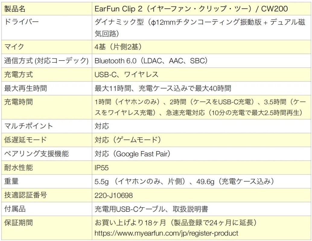 - ・楽天市場:https://item.rakuten.co.jp/earfun/ra-cw200/