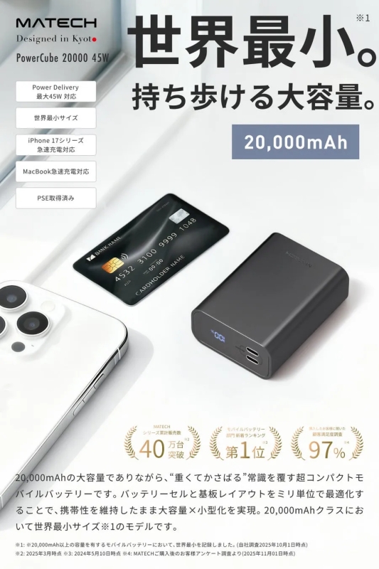 「大容量は欲しいけど、重いのは嫌だ」「ノートPCもスマホもまとめて充電したい」といったニーズをお持ちの方は、ぜひこの機会にPowerCube 20000 45Wを選択肢のひとつとして検討すると良いでしょう。新しいモバイルバッテリー体験が、あなたの日常をより快適なものに変えてくれるはずです!