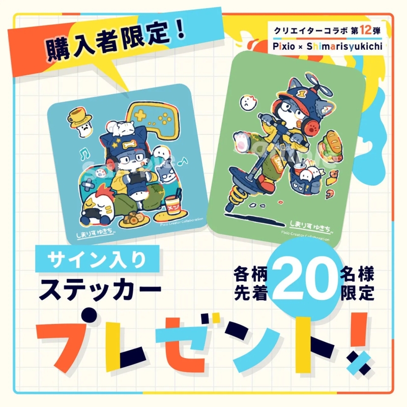 - ・コラボデザインのXXLマウスパッドを購入した方の中から、各柄先着20名様限定で、購入したデザインと同じイラストのサイン入りステッカーがプレゼントされます!