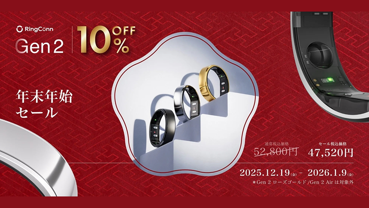 「RingConn Gen 2」を賢く手に入れるなら、今しかありません!年末年始限定の特別セールと、嬉しいプレゼントキャンペーンが開催されます。