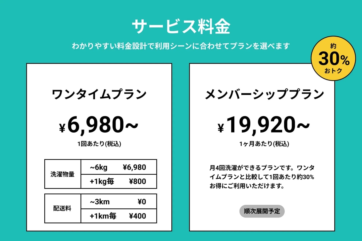 Wash on Goの料金プランは、滞在日数や利用頻度に合わせて選べる2つのプランが用意されています。