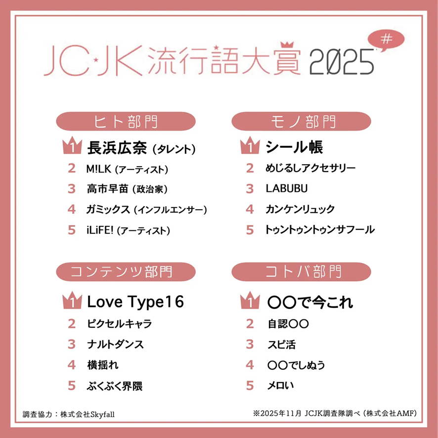 JC・JK流行語大賞2025|Z世代&α世代が選んだ最新の流行りとは?シール帳、Love Type16など